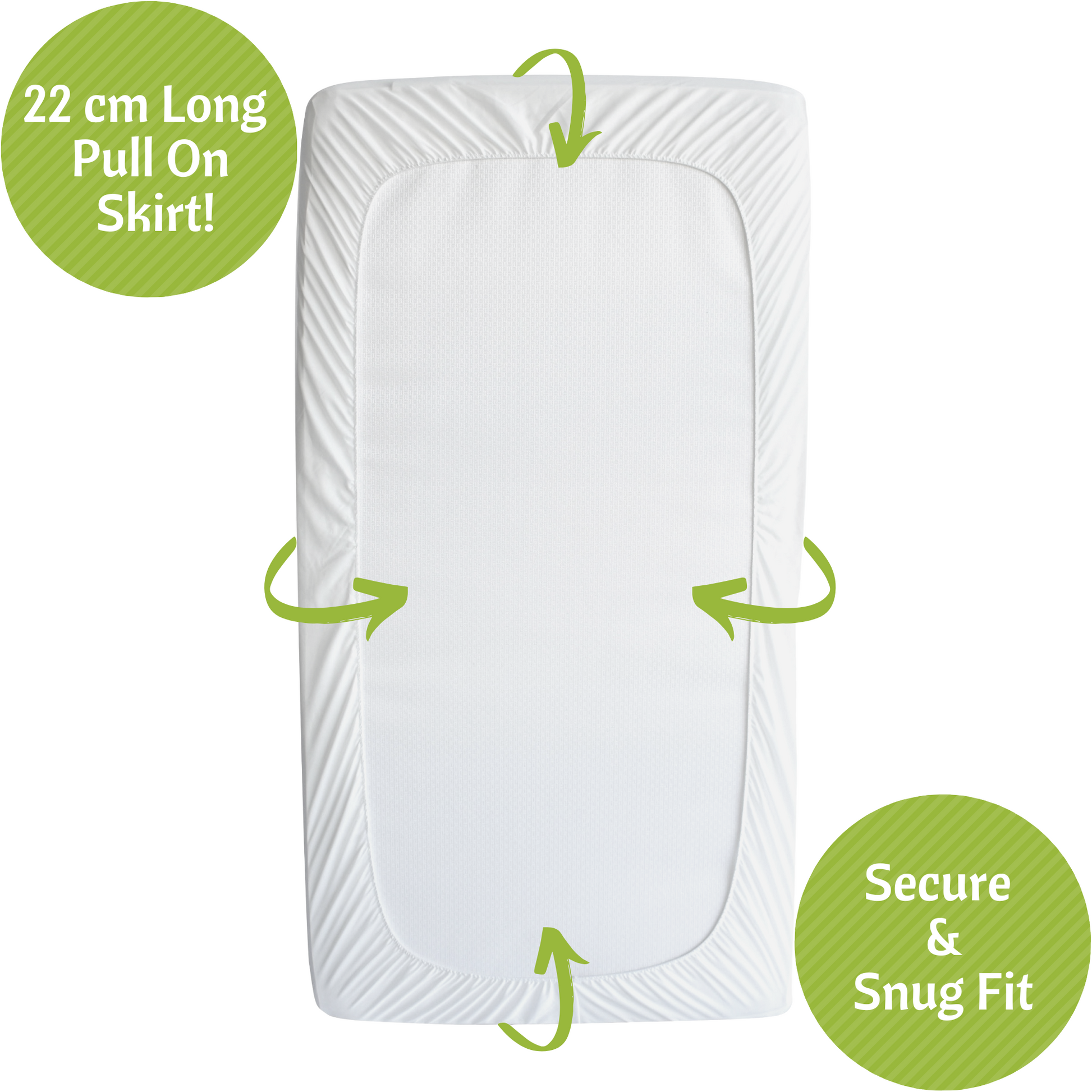 - PERFECTAMENTE SEGURO PARA SU BEBÉ: La salud de su bebé es lo primero y es por eso que nos aseguramos de que no se utilicen productos químicos peligrosos en la funda suave del colchón de la cuna. El protector sin blanquear es naturalmente blanco y está hecho con tela de bambú ecológica que es hipoalergénica.