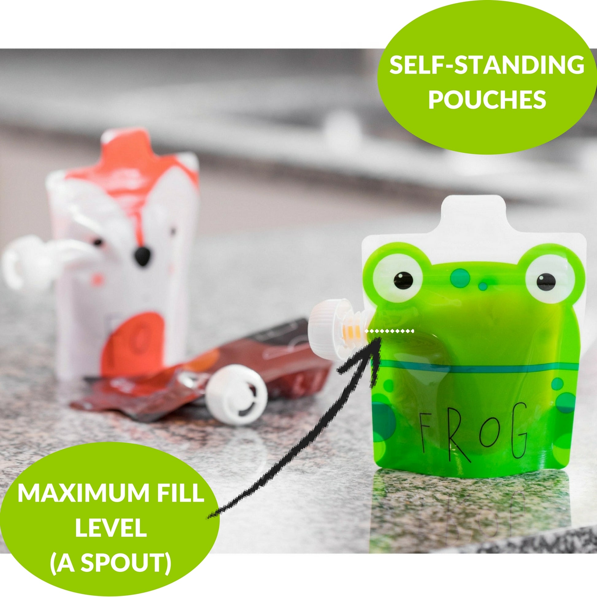 - EASY TO STORE AND FREEZER SAFE: Our pouches are a convenient food storage. You can always store extra filled food pouches in the freezer for later use. To defrost – simply put a frozen food pouch in a bowl of hot water. These pouches with cute animal muzzles are self-standing and you can always see the contents through the transparent window on the back side of each pouch.