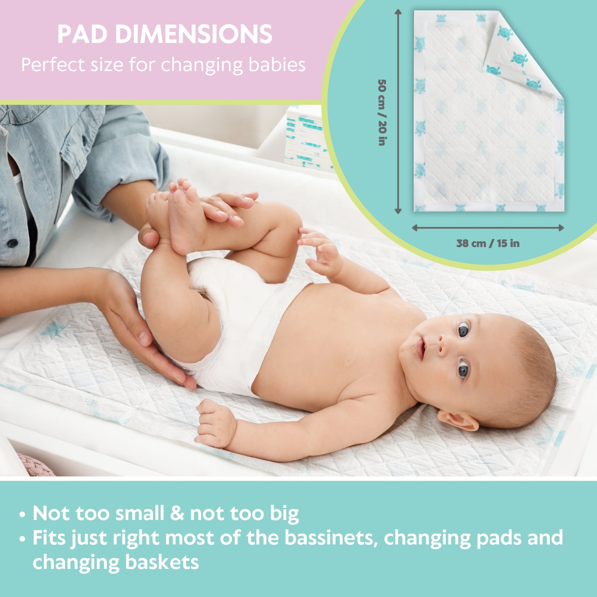 • KEEPS COMFORTABLE: Each disposable changing pad features a super soft hexagon-shaped quilted surface. It provides a comfy area of just the right temperature for your baby to lie on, and quickly absorbs fluid to keep it away from your newborn's delicate skin.