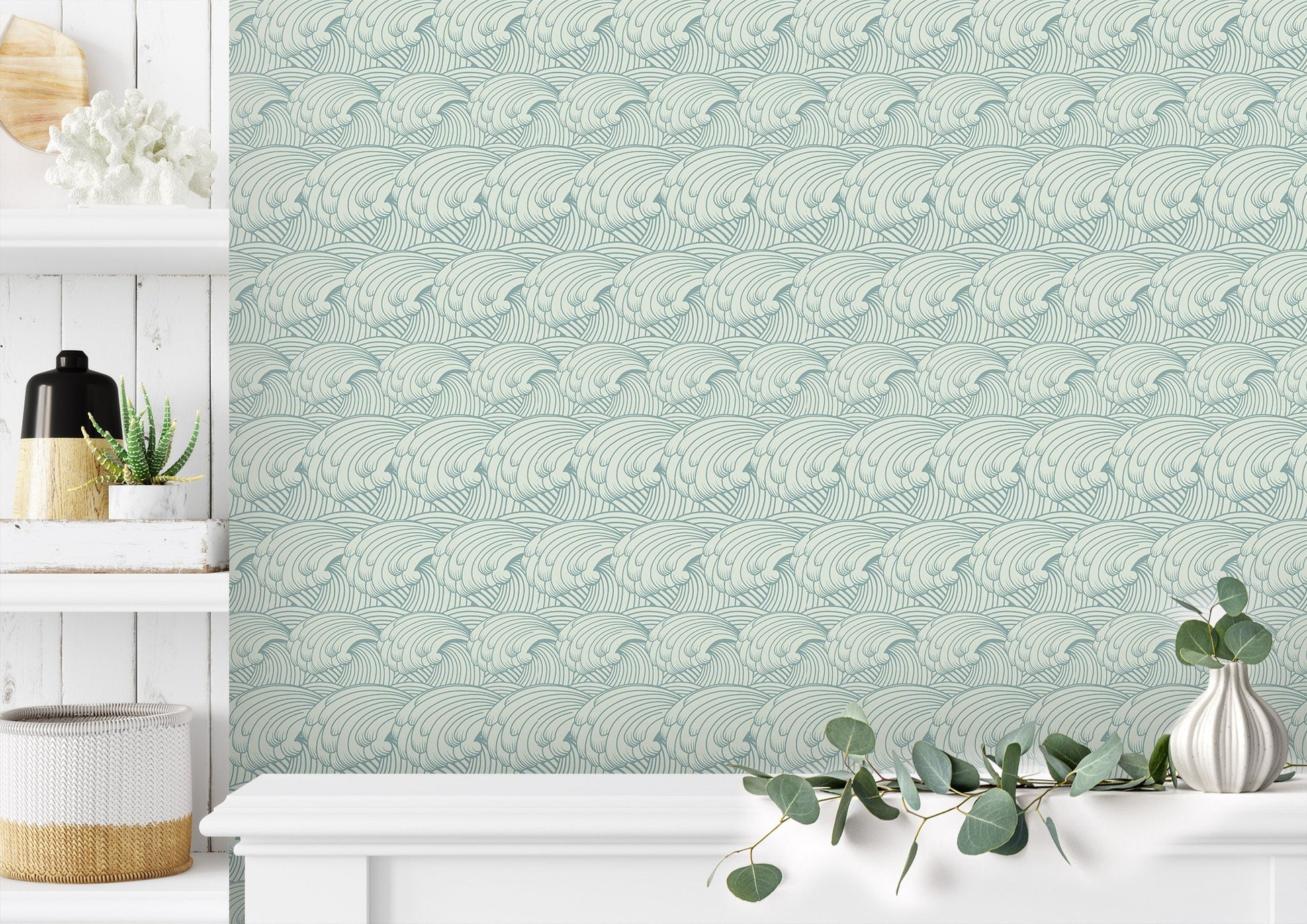 Ocean Waves Wallpaper | Nautical Wallpaper | Waves Peel and Stick Wallpaper | Removable and Repositionable Wallpaper | Ocean Wallpaper
