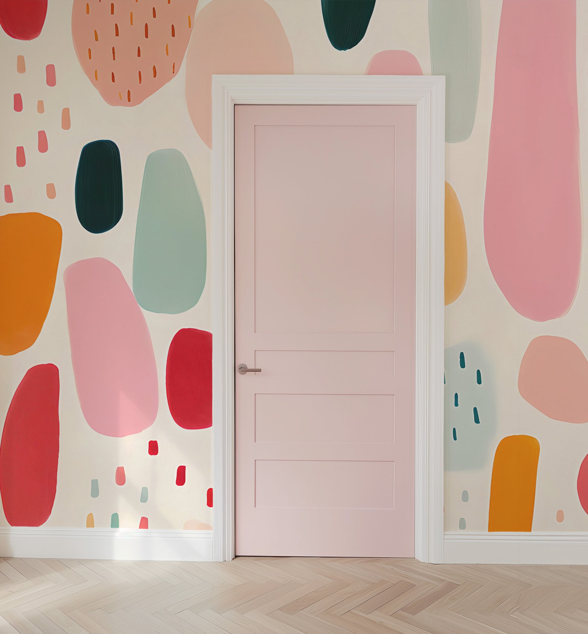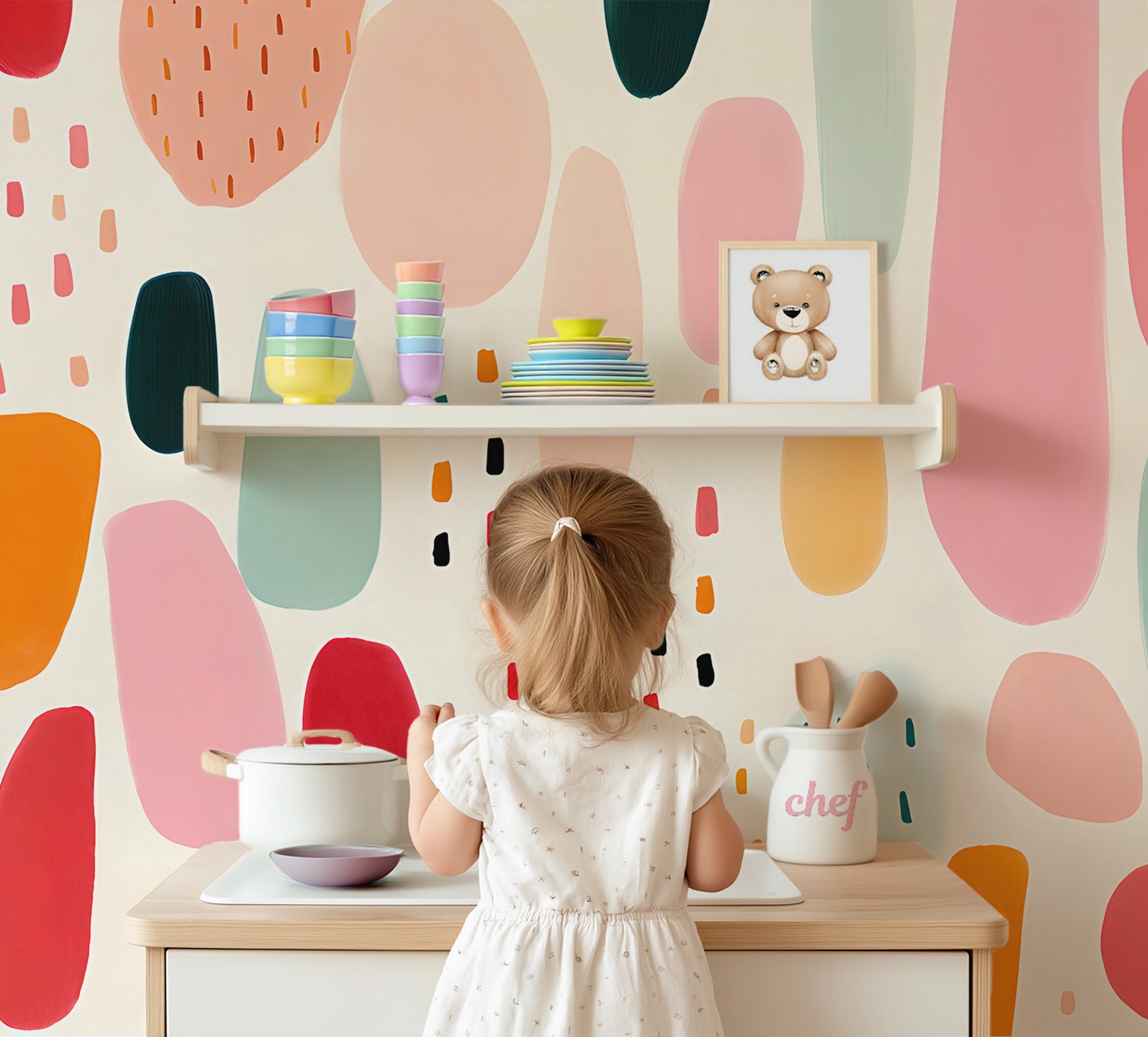 Elevate your kid's space with our Watercolor Playful Shapes Colorful Mural, featuring dynamic brushstrokes and vibrant colors. With easy peel-and-stick application, it's perfect for renters and DIY enthusiasts. Transform your child's playroom with this Colorful Brushstrokes Print Wallpaper, adding a burst of contemporary energy to the walls.