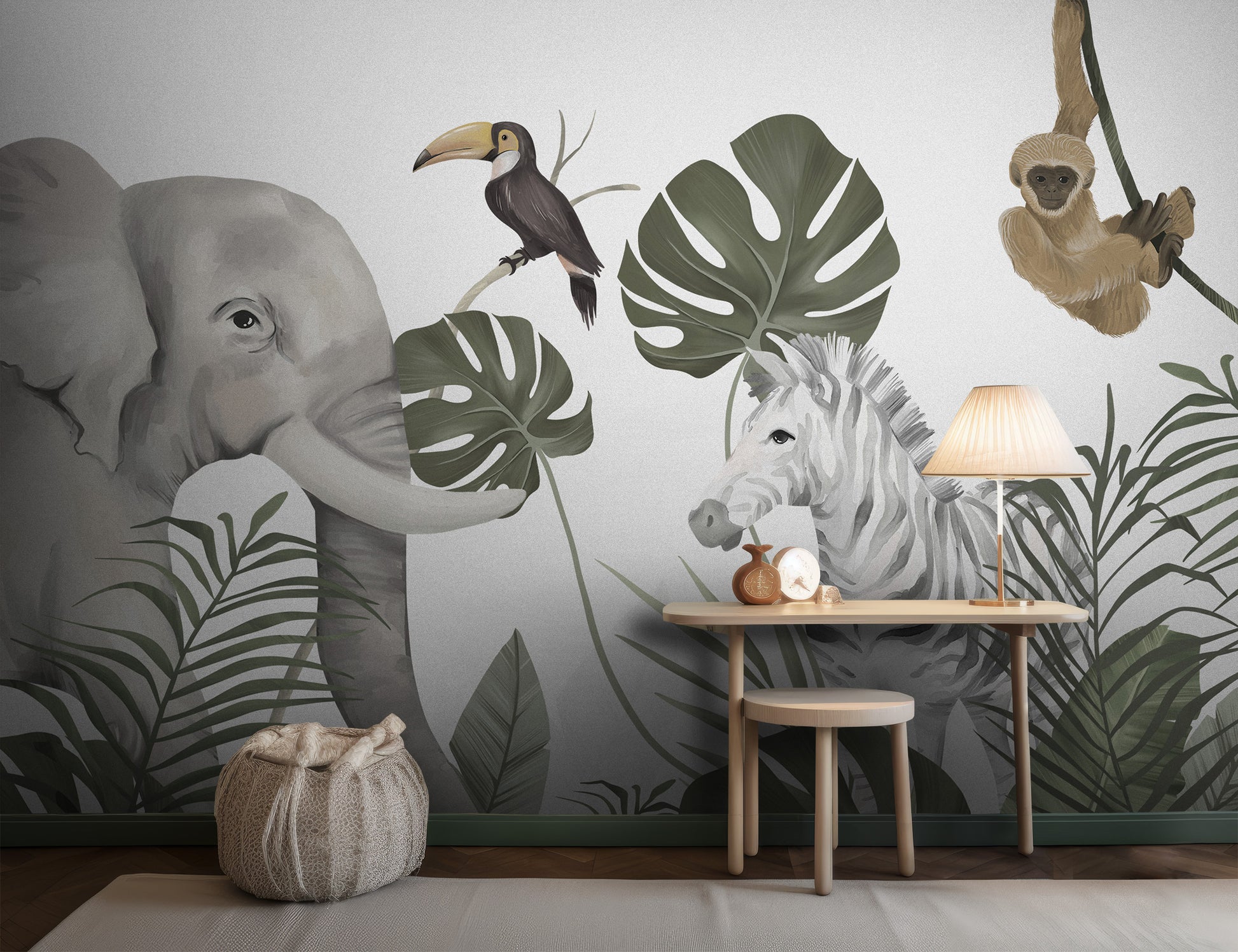Animal Wallpaper for Kids | Nursery Safari Mural | Peel & Stick Wallpaper, Removable and Renter Friendly Wall Decor
